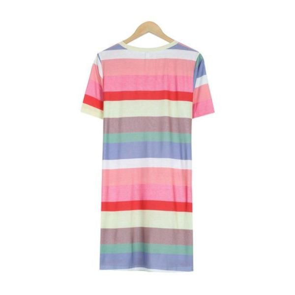 This easy-to-wear oversized t-shirt dress features muted horizontal stripes from top to bottom, giving it a retro-mod 1990s essence that is right on-trend. The large crew neck collar and boxy sleeves keep this t-shirt mini dress cool and casual. Wear it with boots or flats for a versatile look.